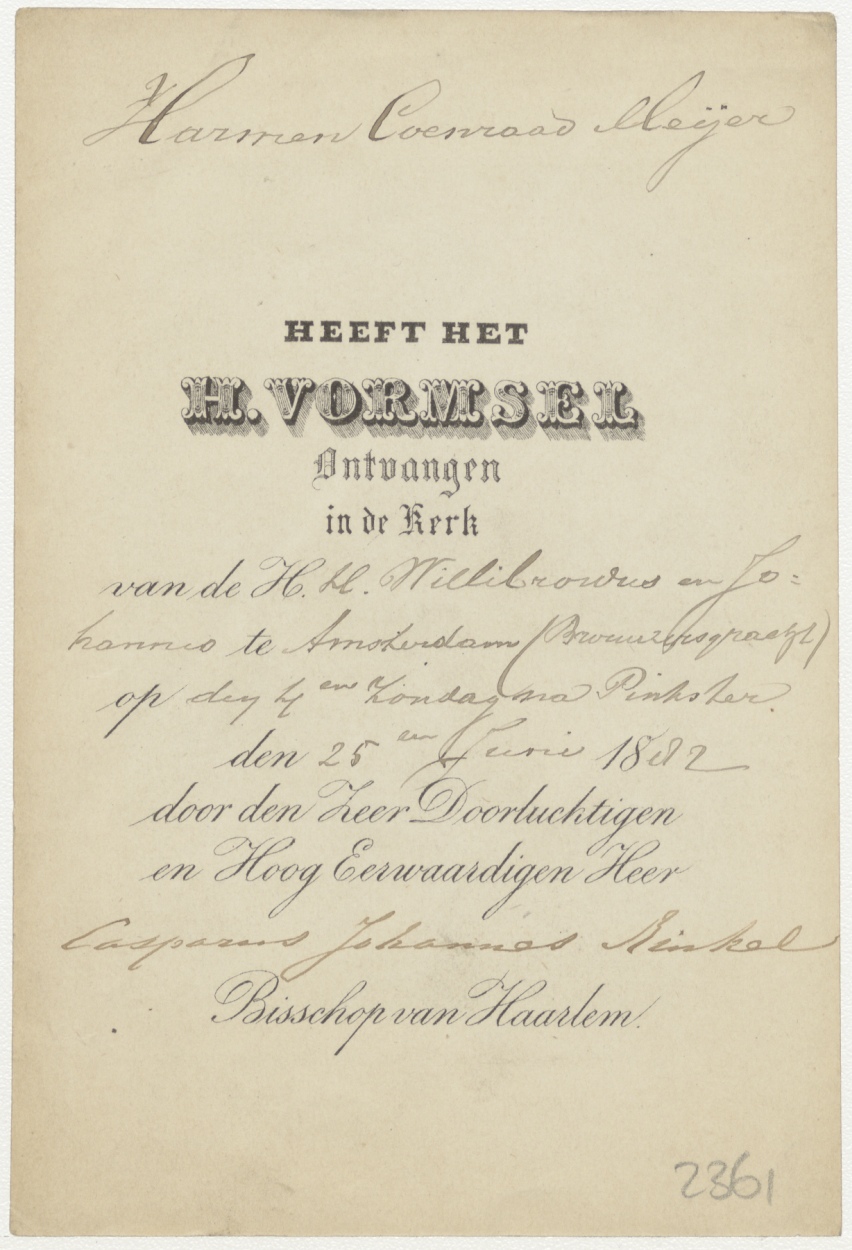 Pinksteren, kz. H. Vormsel Harmen Coenraad Meijer (1882) door Casper Rinkel bisschop van Haarlem;Amsterdam