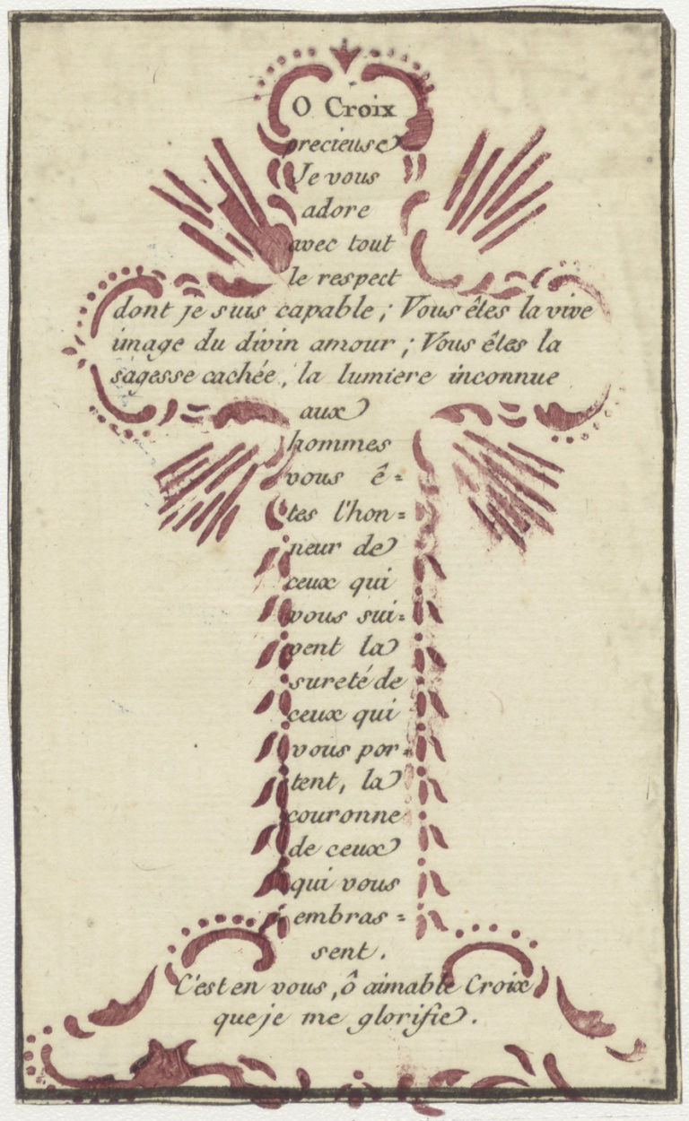 Gebed 'O kruis' in de vorm van een kruis (Frans)