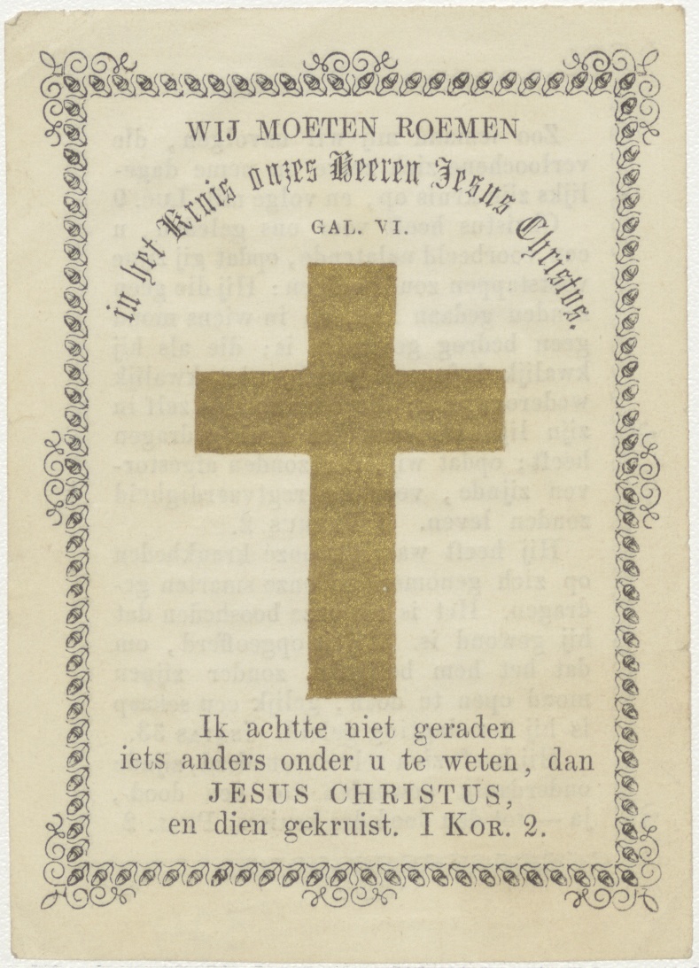 Wij moeten roemen, gouden kruis met gebed, kz. bijbelcitaten
