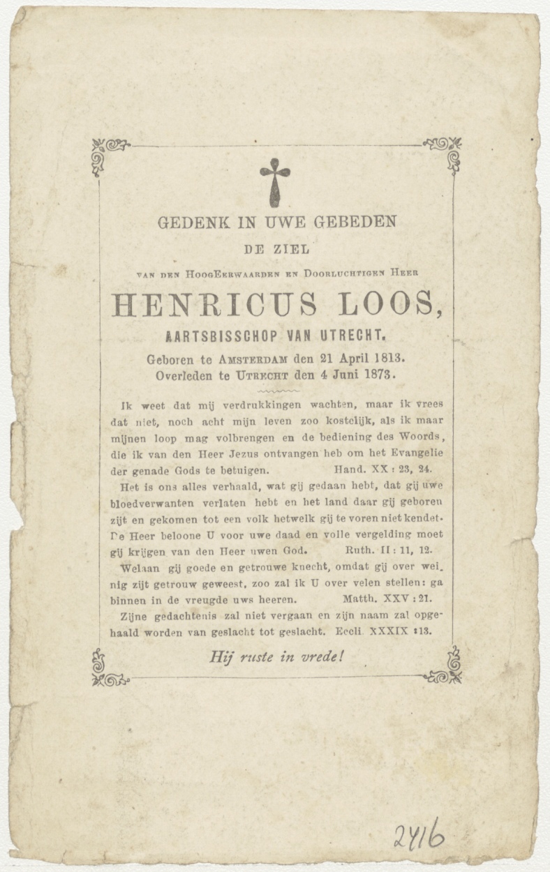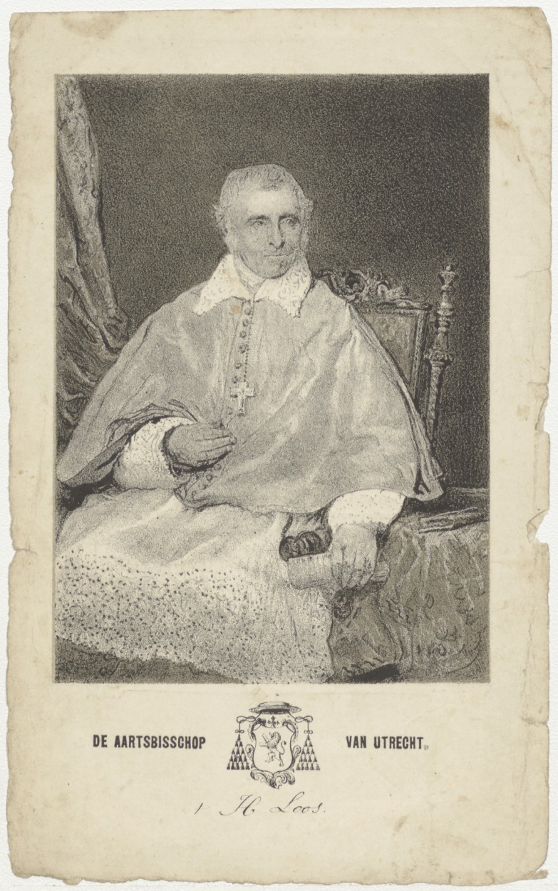 Portret van Henricus Loos (1813-1873), aartsbisschop van Utrecht, kz. religieus bid voor ziel Henricus Loos (+1873) aartsbisschop van Utrecht
