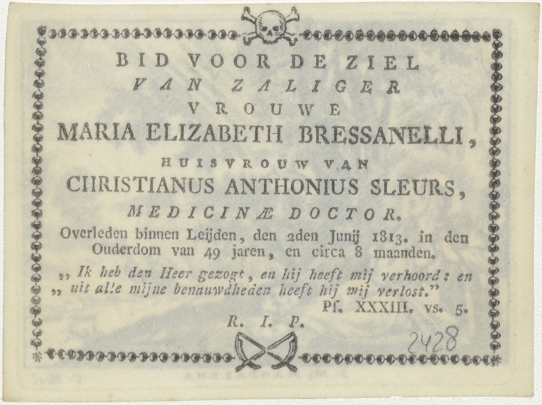 H. Maria Magdalena, kz. Bid voor ziel Maria Elisabeth Bressanelli (+1813), Leiden, huisvrouw van Christianus Anthonius Sleurs