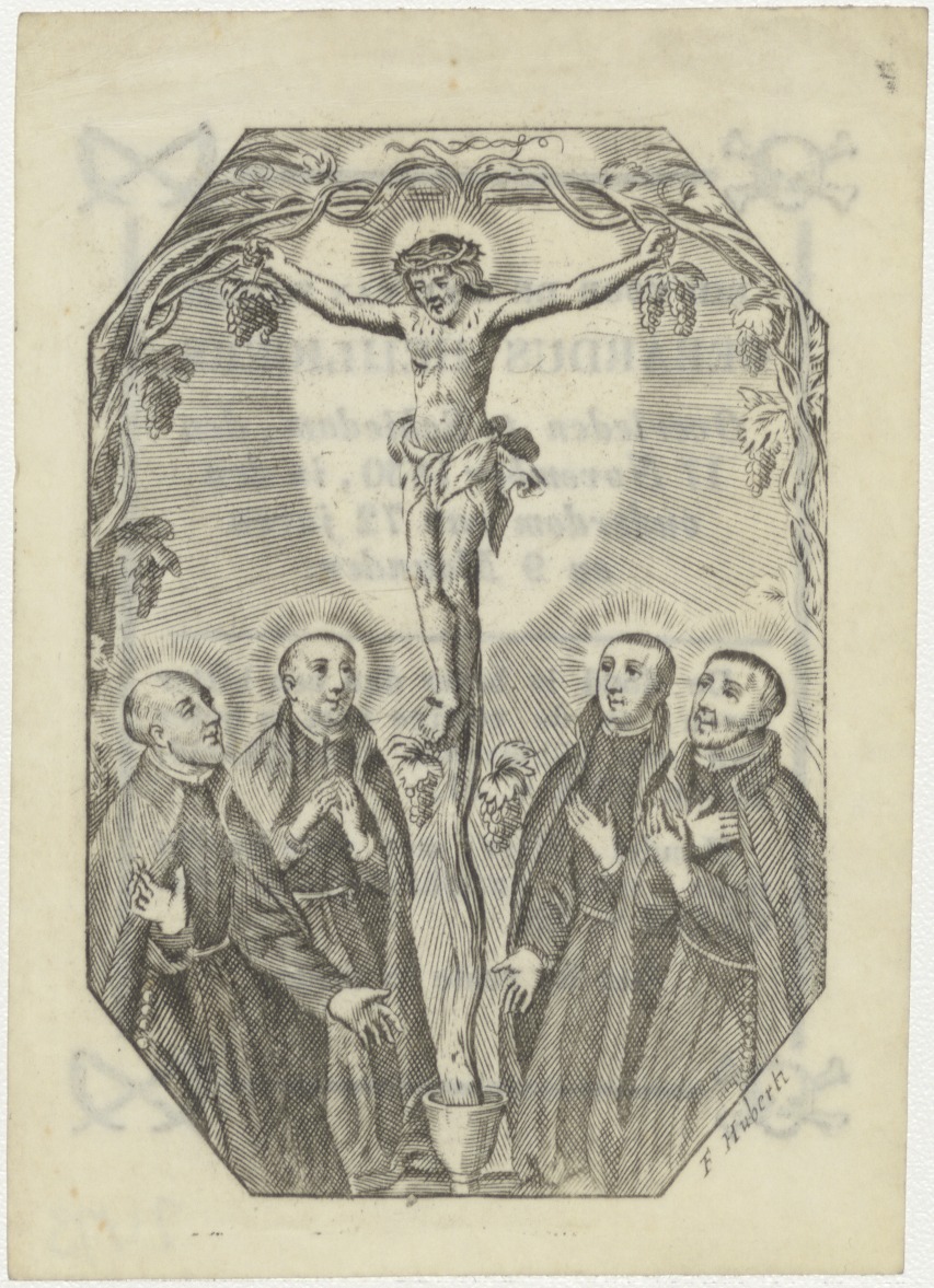 Gekruisigde Christus met vier Jezuïeten, kz. Heyligers (+1830) Schiedam