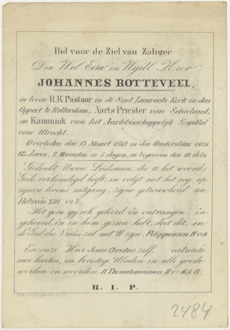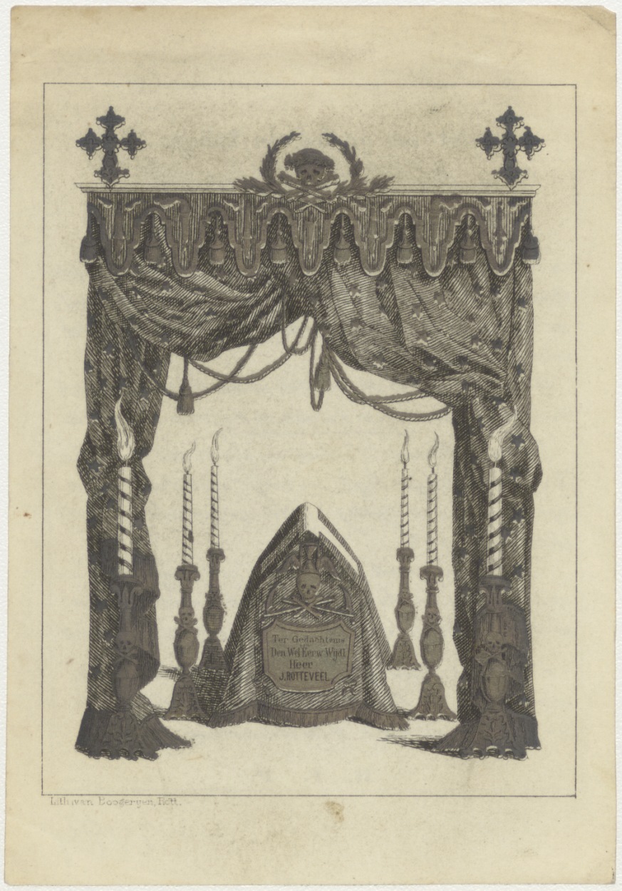 Doodskist van baldakijn, kz. religieus; Rotteveel(+1849) pastoor Laurentskerk in den oppert Rotterdam