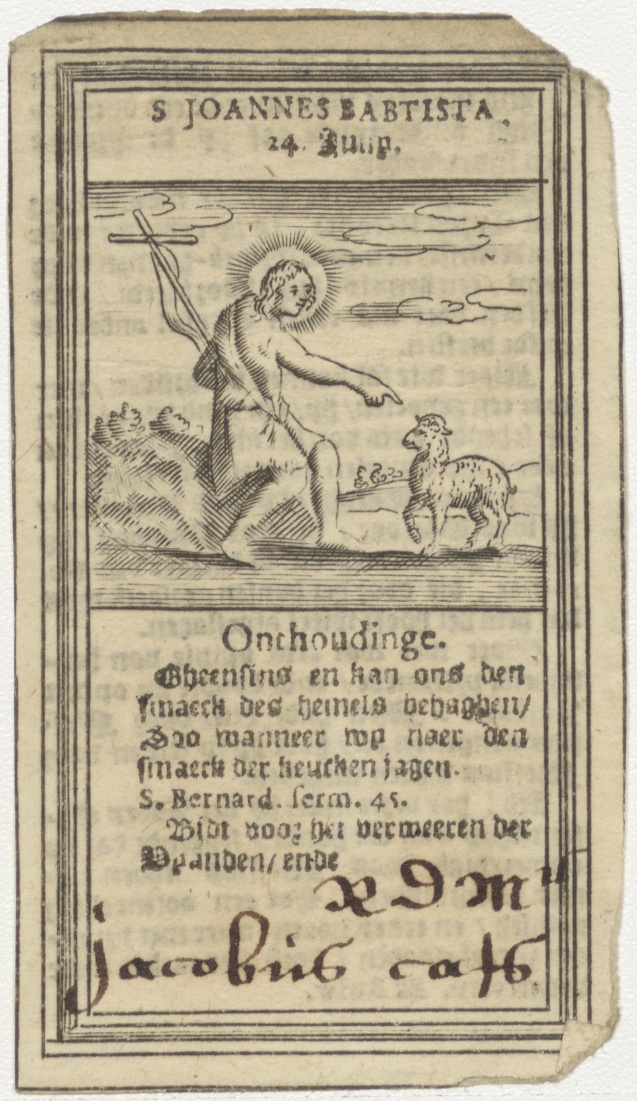 H. Joannes (Johannes) Babtista (Baptista), naamfeest (24 augustus), gebed, ingekleurd, kz. gebed(?);