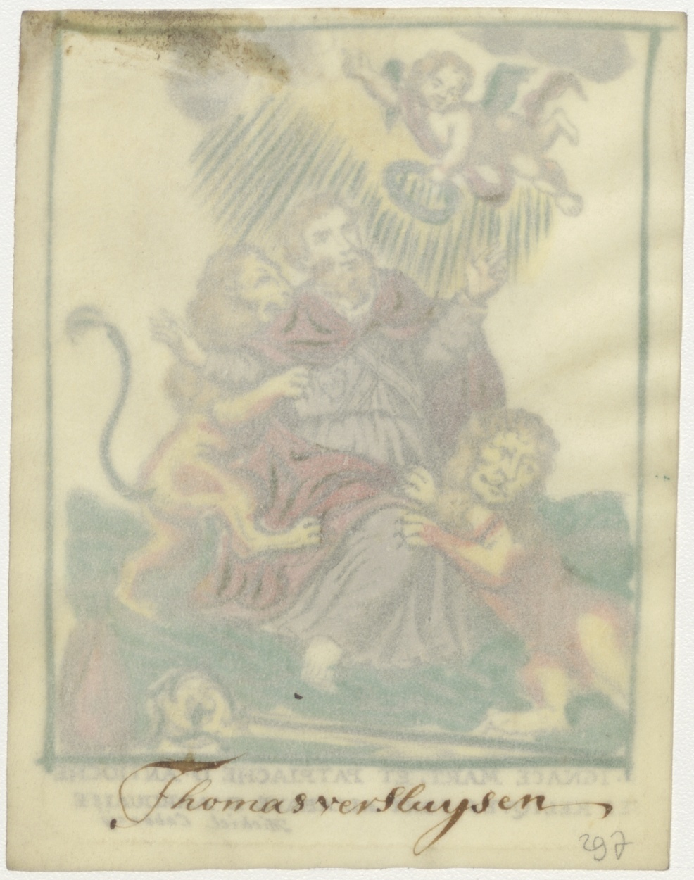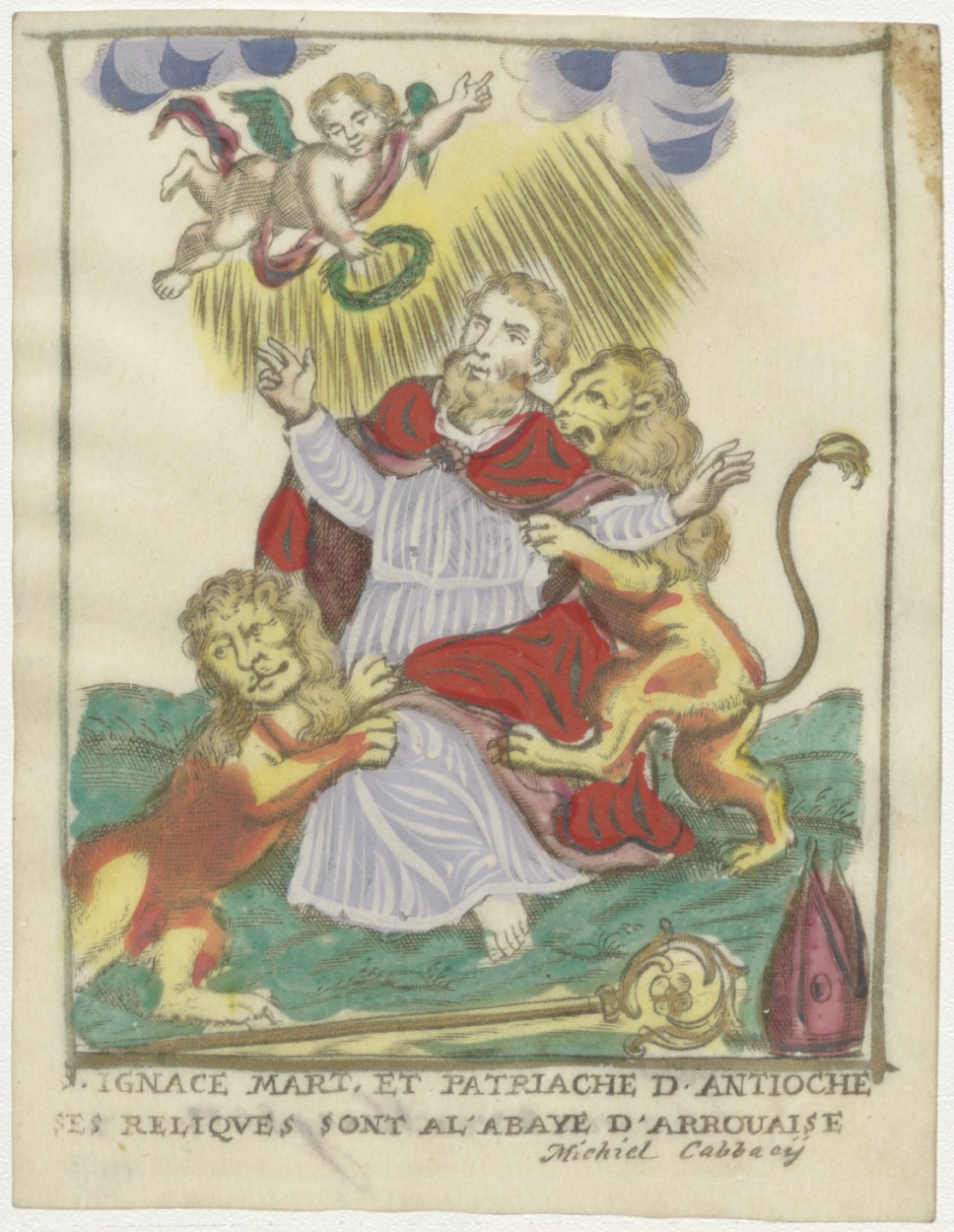 H. Ignaca mart, patriache d'Antioche, ses reliques sont al' abaye d'arrouaise (Ignatius), ingekleurd, kz. Versluysen;