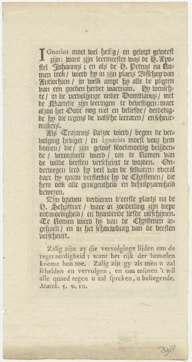 H. Ignatius, naamsfeest (1 februari), kz. levensbeschrijving