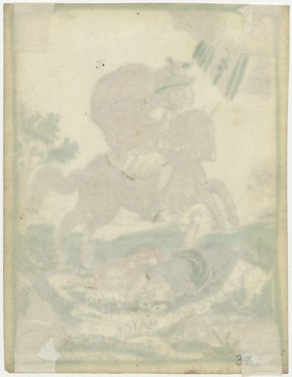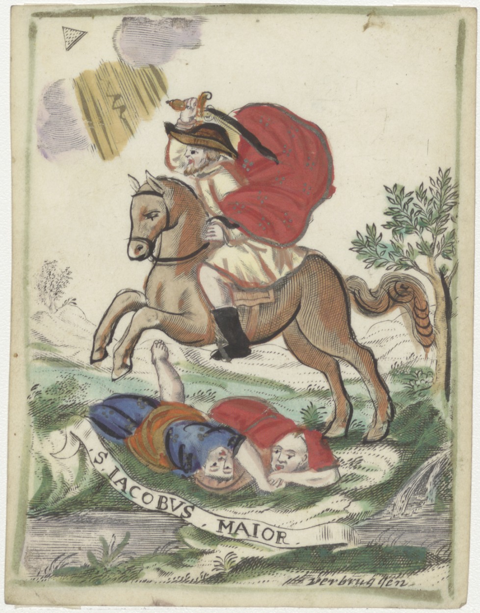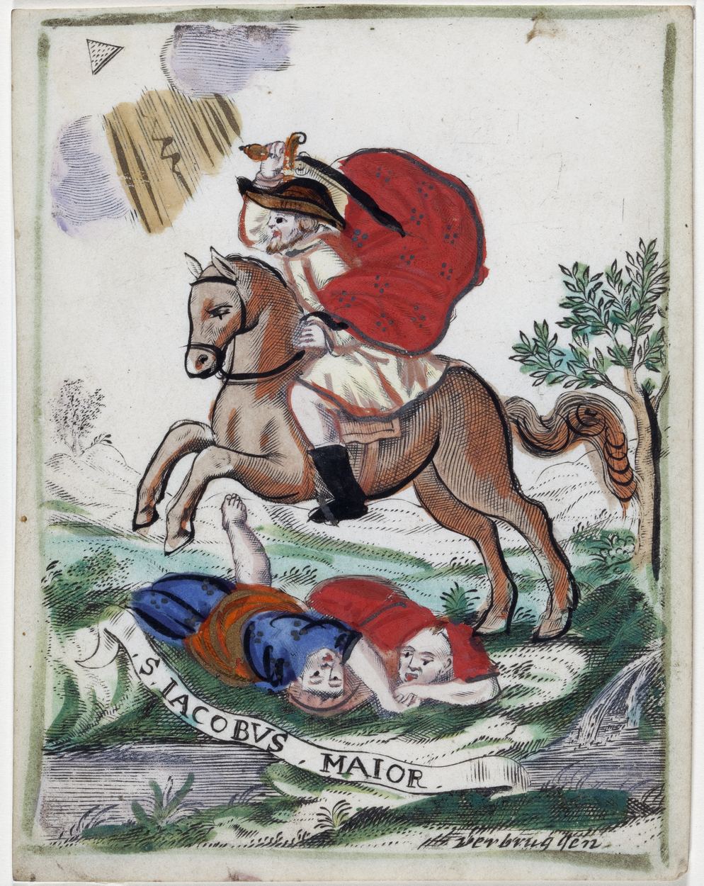 H. Jacobus Maior te paard bij veldslag, ingekleurd