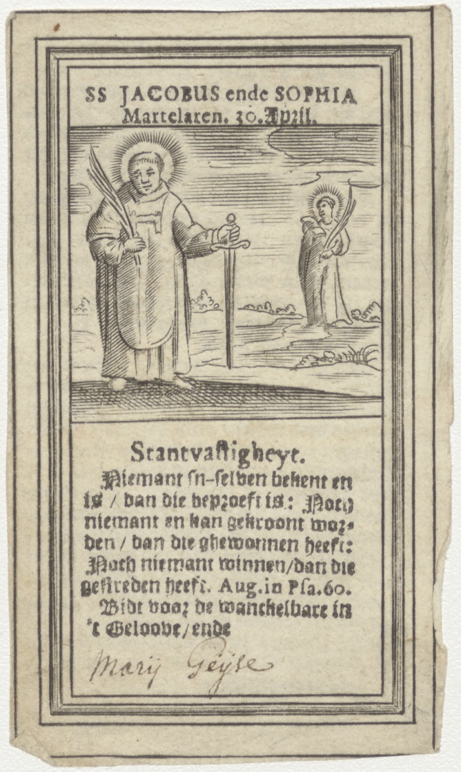 H. Jacobus en H. Sophia, martelaren, naamfeest (30 april) met gebed, kz. Geysen;gebed;