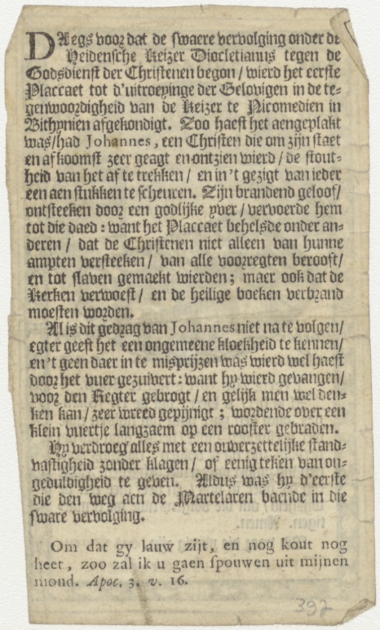 Johannes (Joannes) martelaar, naamfeest (7 september), Bid voor Trijntje Arenden, kz. gebed