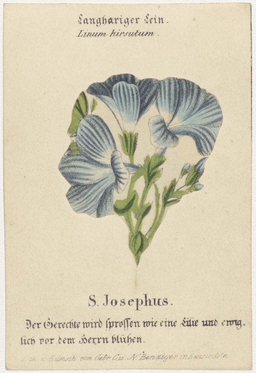 H. Josephus (Jozef), onder lelie, ingekleurd, kz. bloemenheilige (Duits);