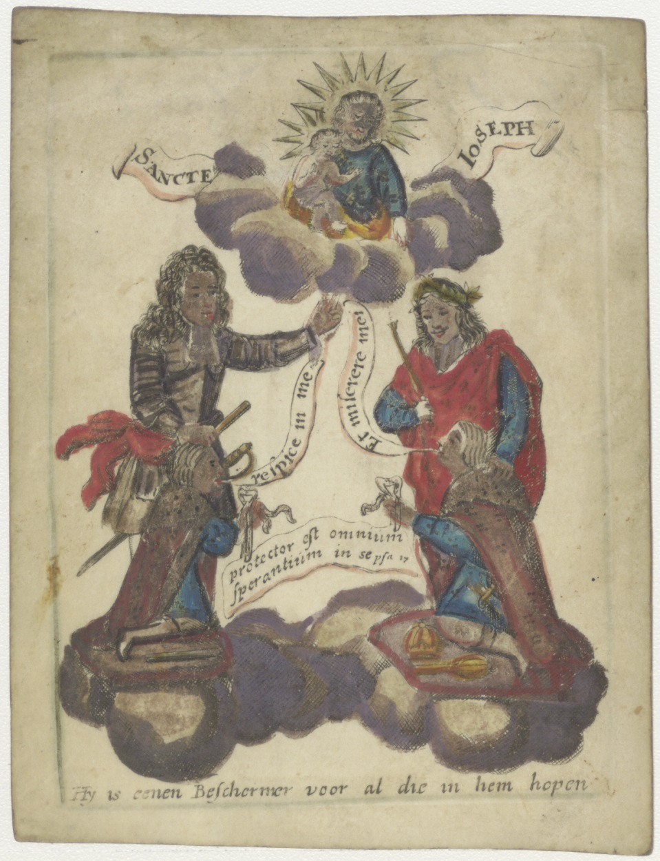 H. Joseph (Jozef), hij is eenen beschermer voor al die in hem hopen, ingekleurd, kz. Van der Mary(?);1819;