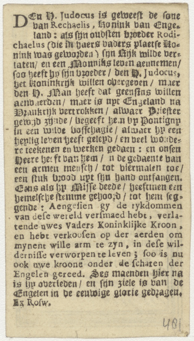H. Judocus, naamfeest (13 december), kz. levensbeschrijving