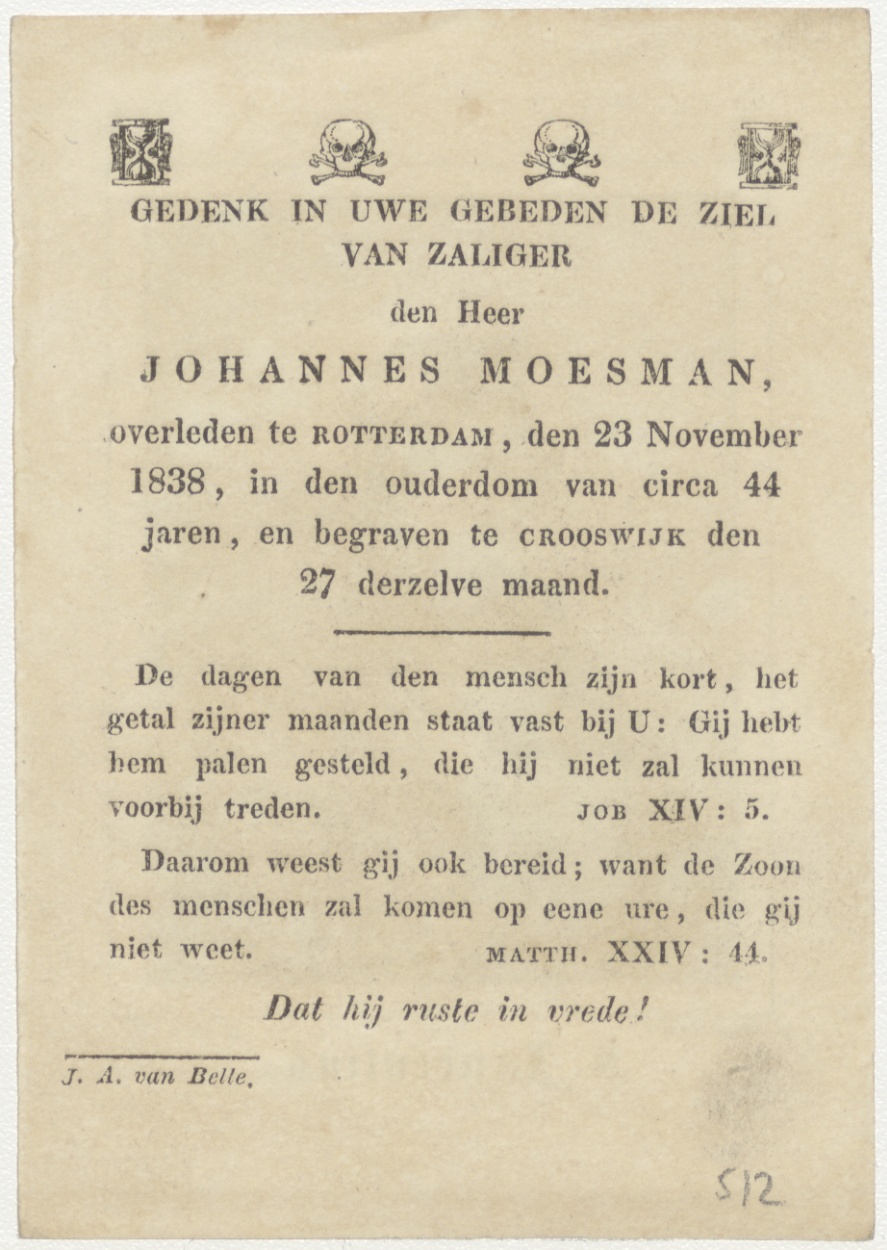 H. Laurentius, import, kz. Bid voor ziel Moesman (+1838);Rotterdam;gebed;