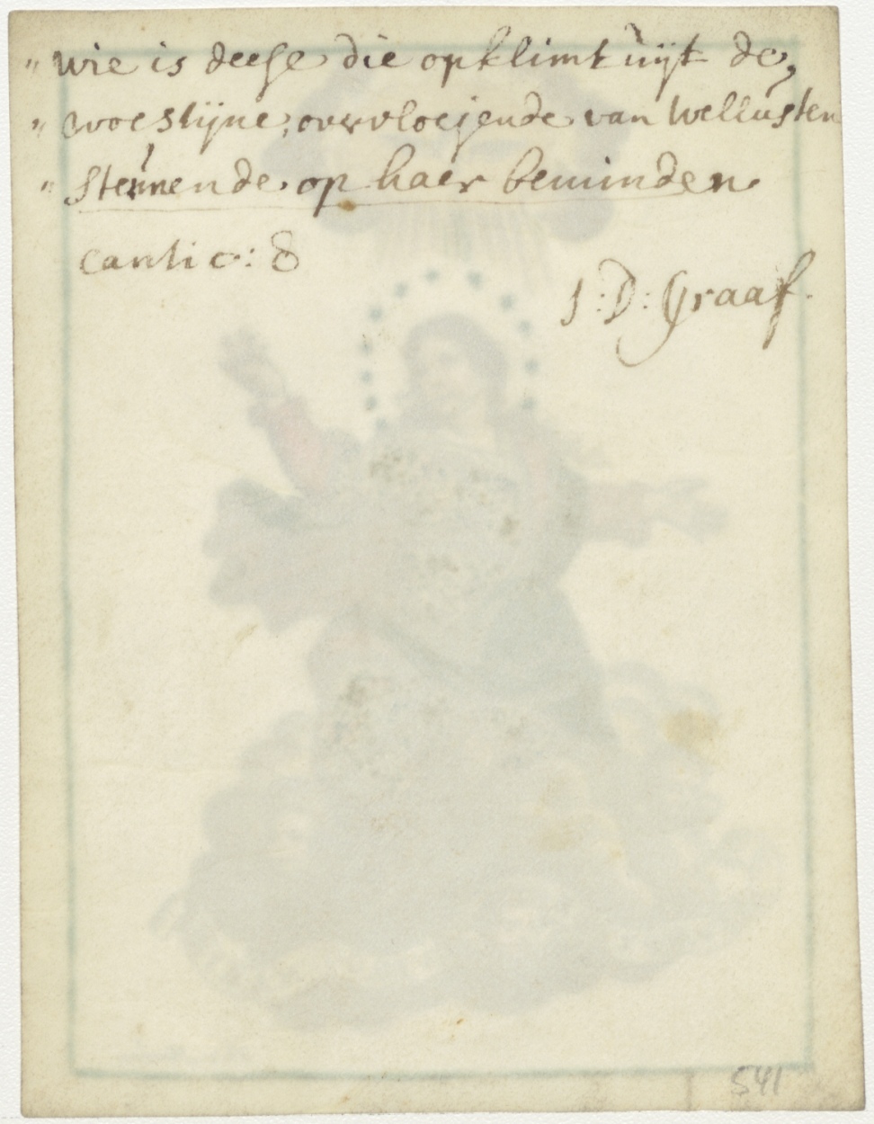 Hemelvaart van Maria, ingekleurd, kz. Wie is deese die opklimt uijt de woestijne ... Cantio: 8, J.D. Graaf