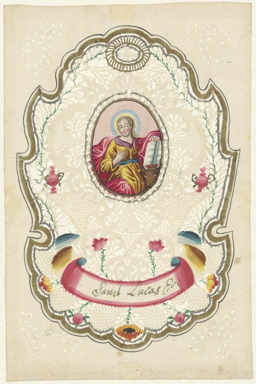 H. Lucas de evangelist, ingekleurd, kz. tekst