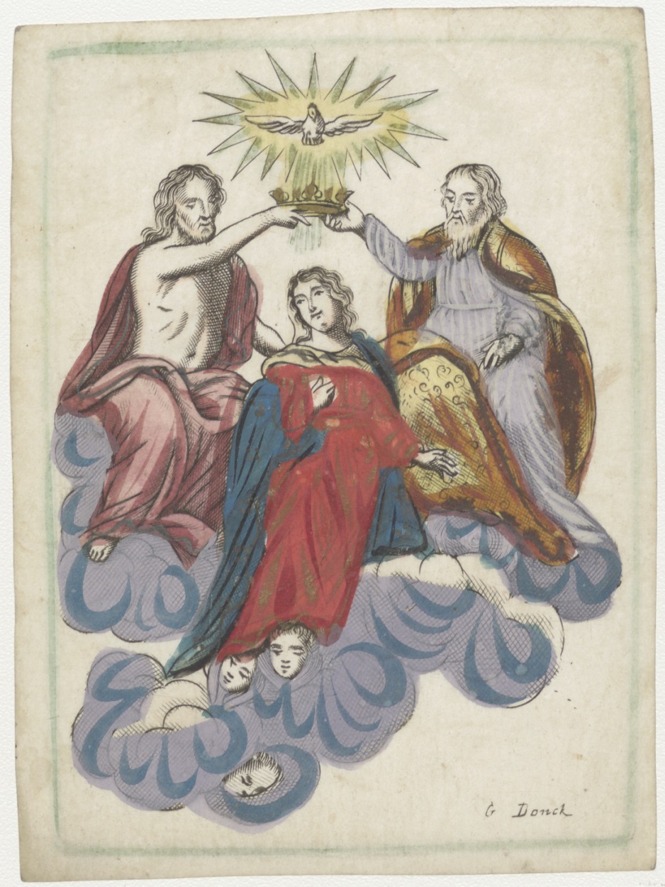 Kroning van Maria door Christus en God, ingekleurd