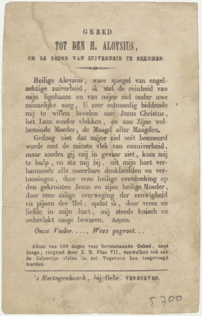 H. Aloysius van Gonzaga, kz. Gebed tot den H. Aloysius