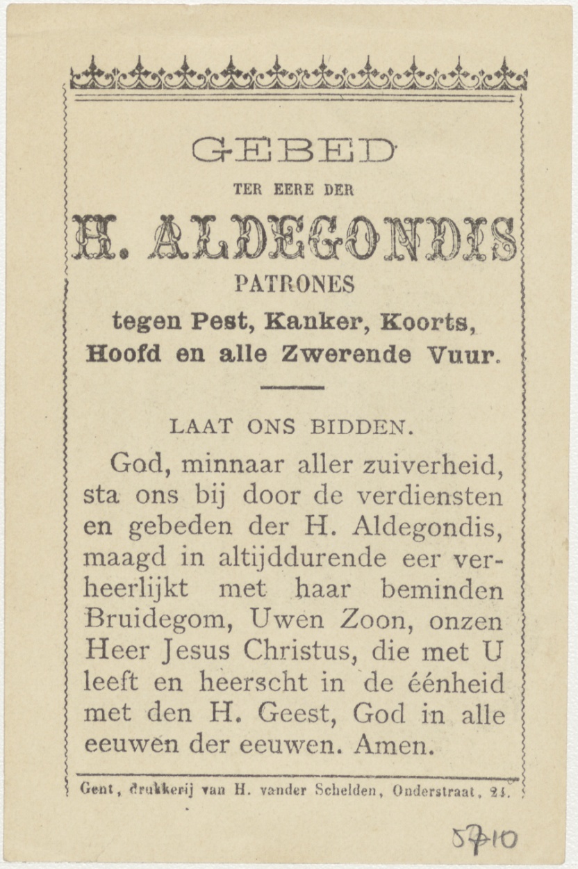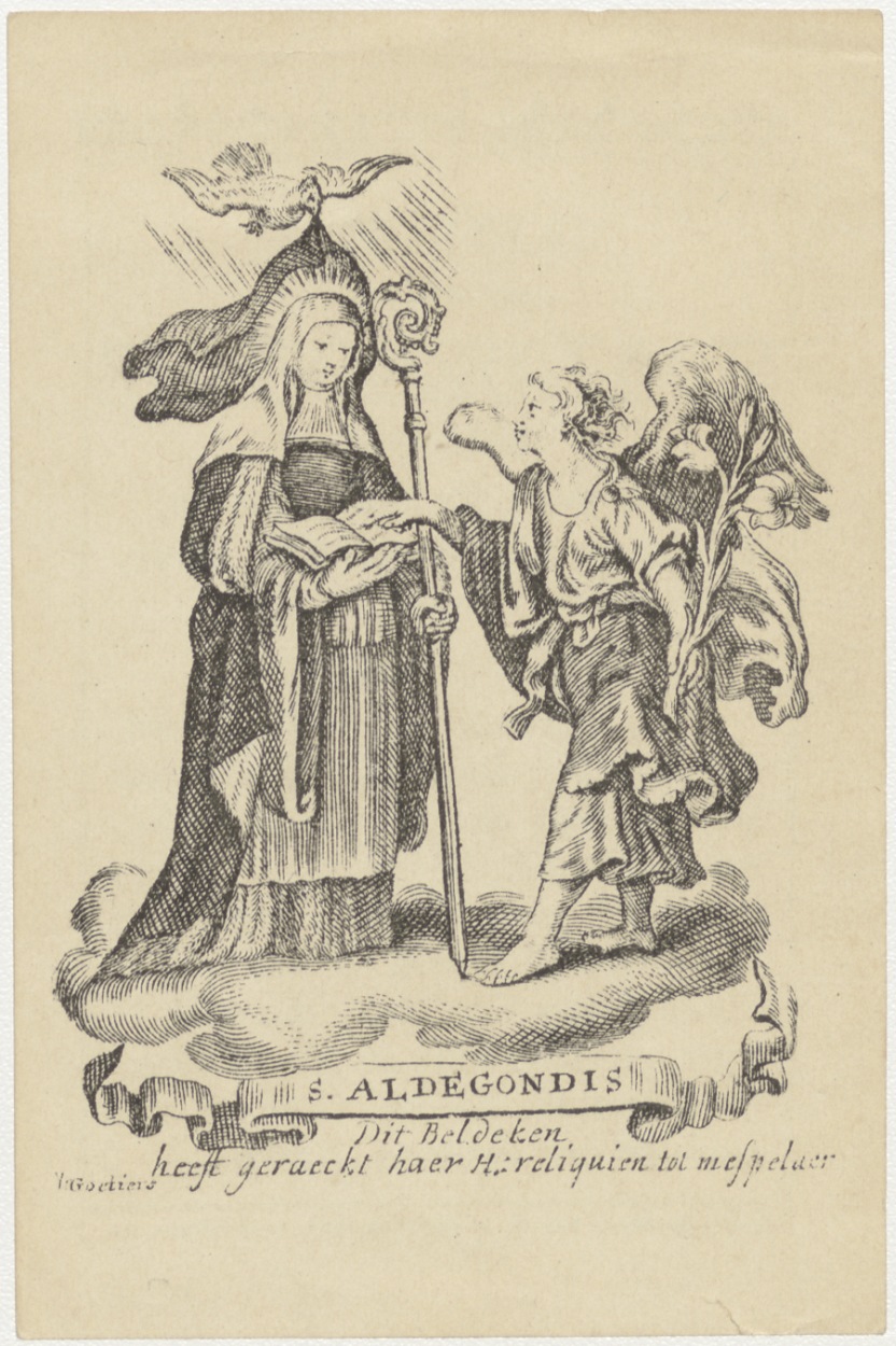 Mespelaar, H. Aldegondis, naar gravure, kz. gebed tot de H. Aldegondis