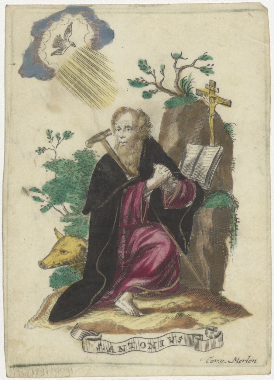 H. Antonius de heremiet, ingekleurd, kz. Stryer met spreuk