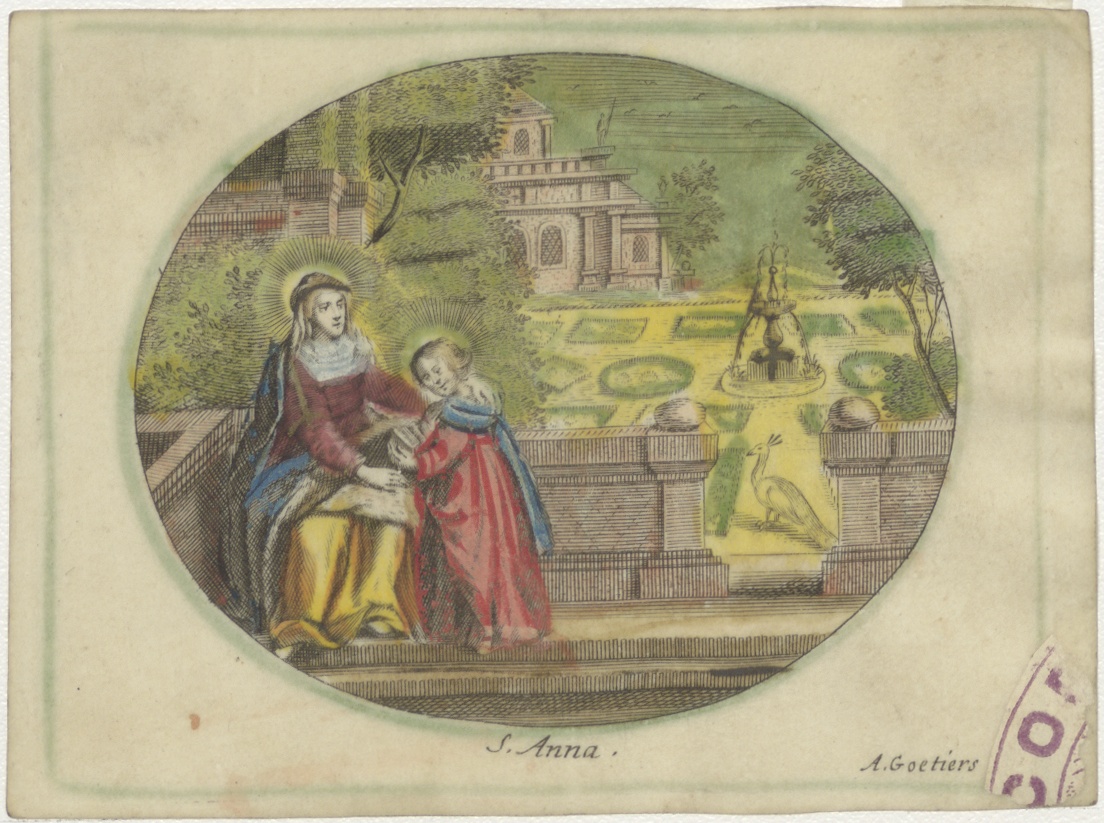 H. Anna met Maria in landschap, ingekleurd