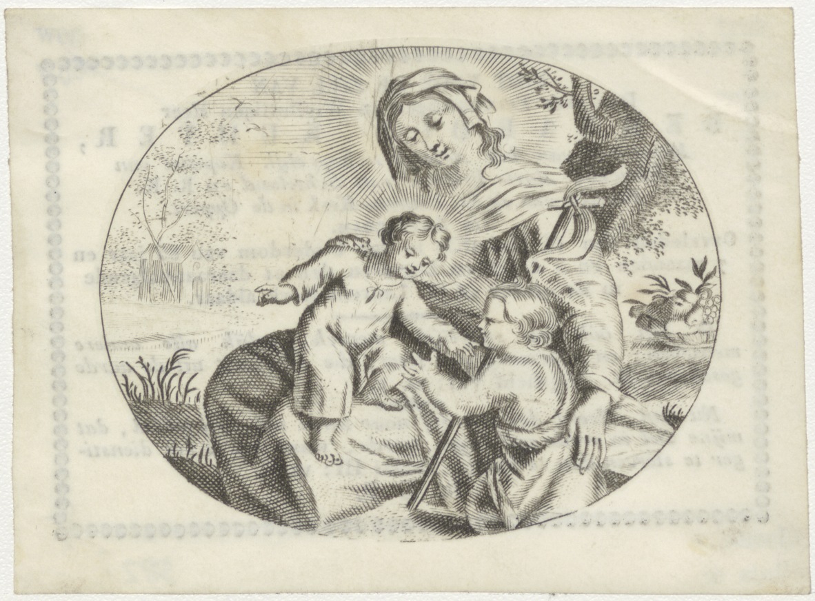 Maria, met Christuskind en Johannes, kz. Religieus; bid voor ziel Bernardus Kuijter (+1830) kanunnik Utrecht, pastoor St. Laurens Rotterdam