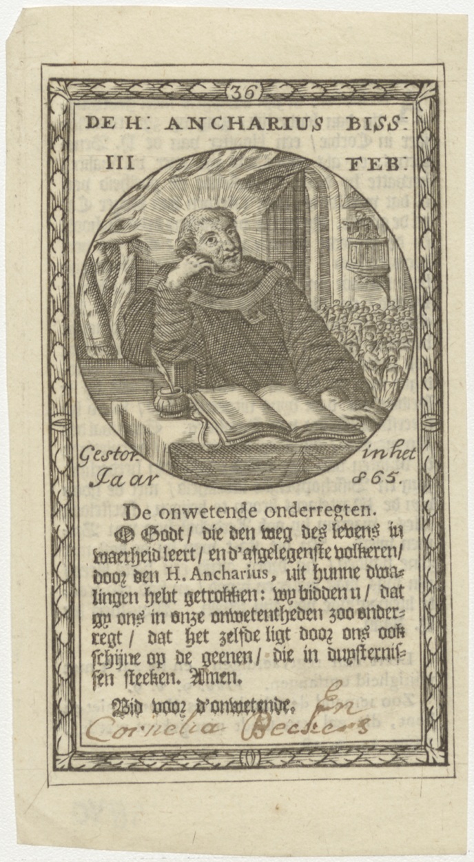 H. Ancharius, gebed, Cornelia Beckers, kz. levensbeschrijving