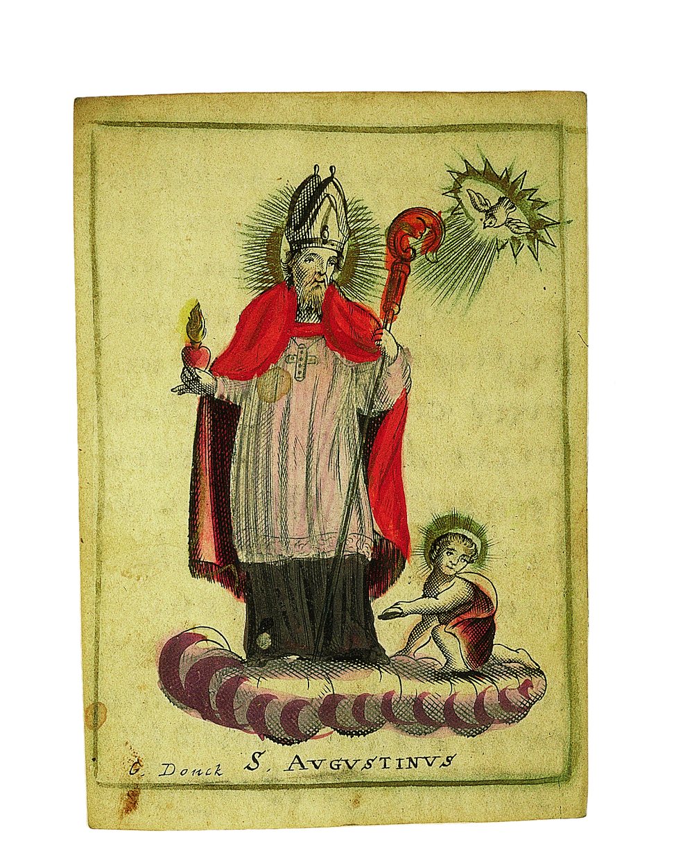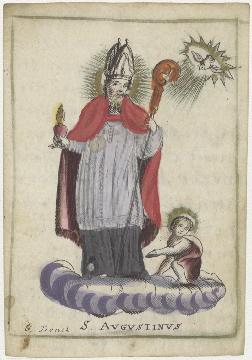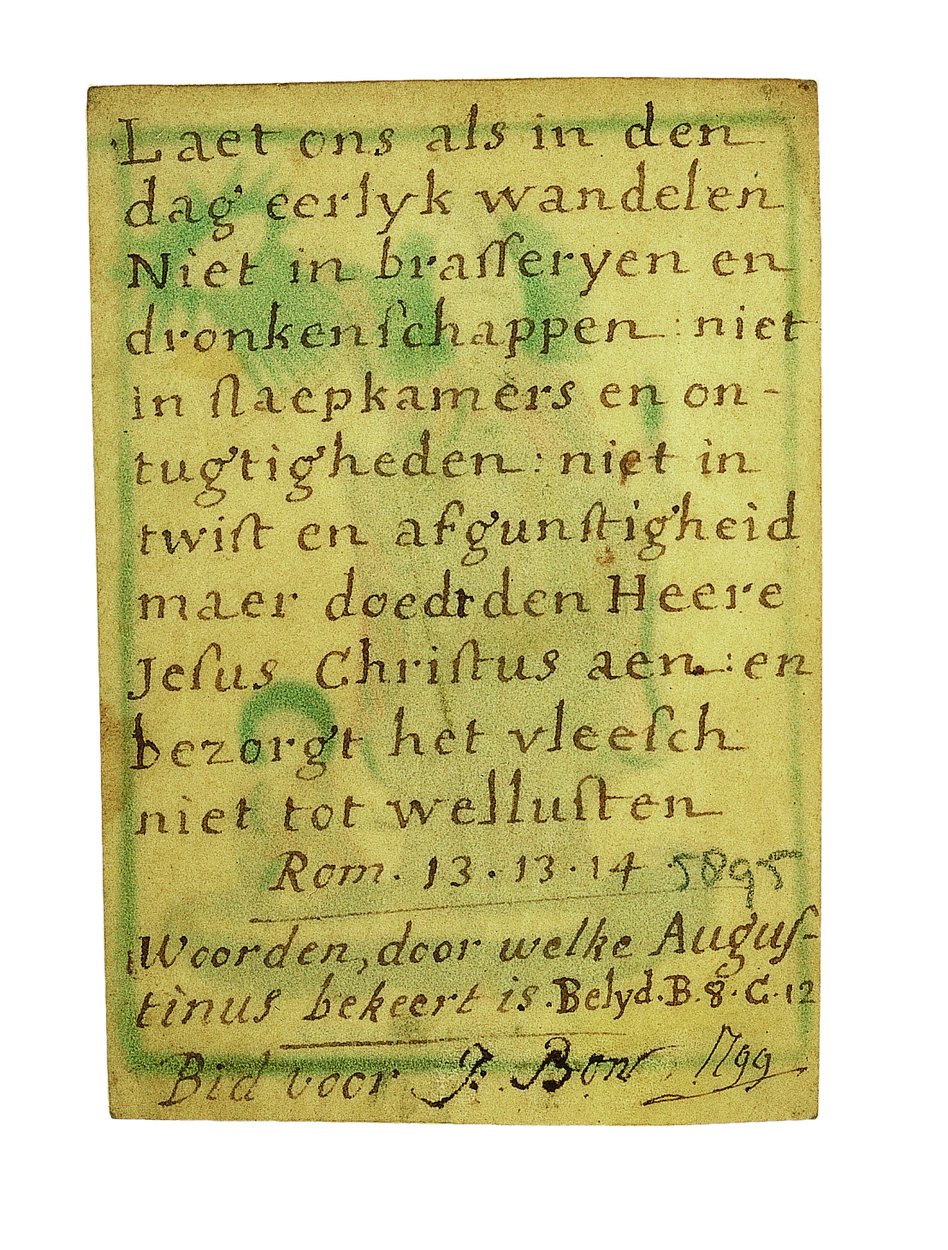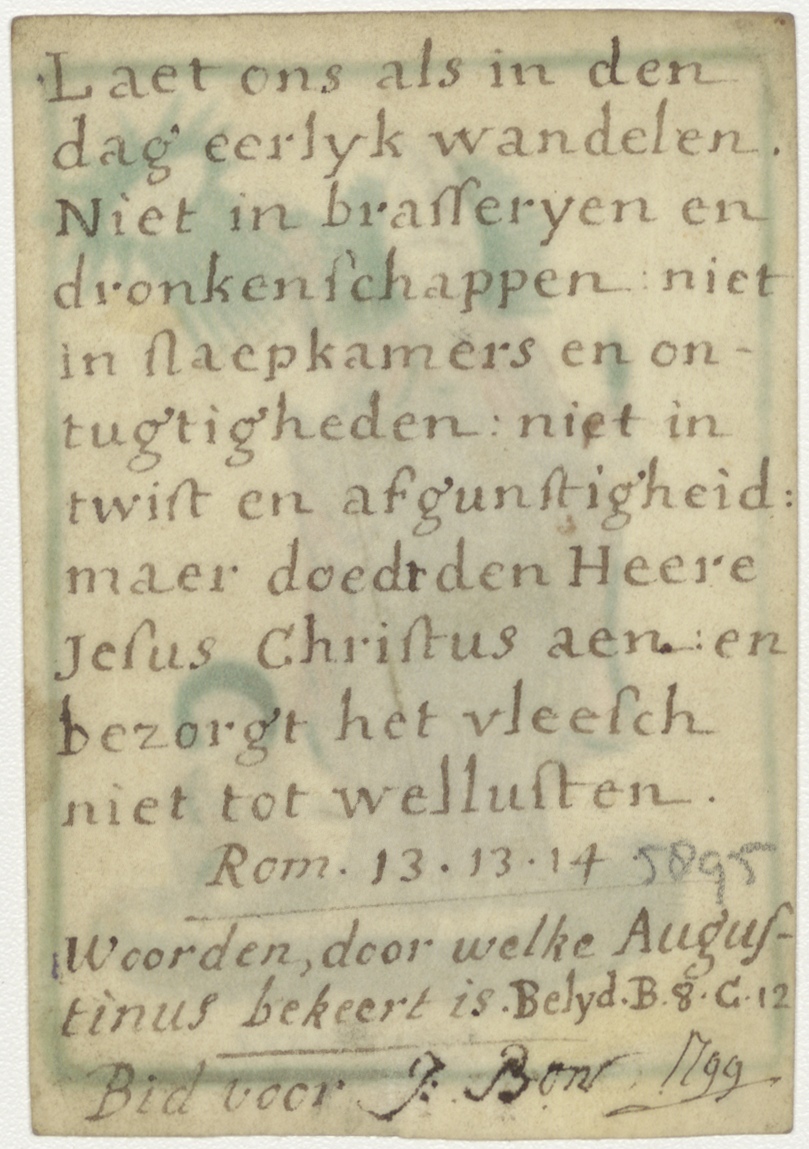 H. Augustinus, ingekleurd, kz. Religieus, bijbeltekst, bid voor J. Bon 1799