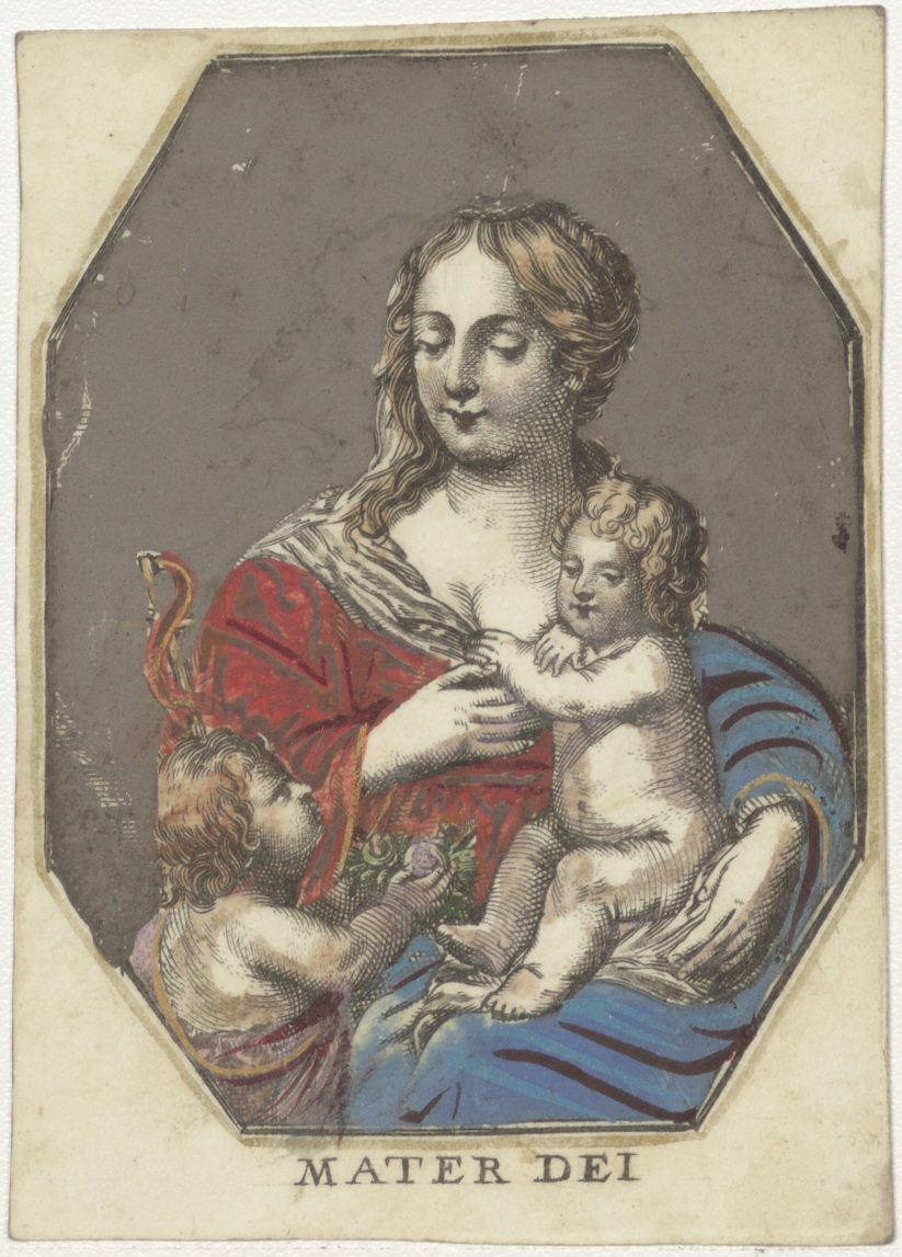 Maria Mater Dei met Christuskind en Johannes, ingekleurd