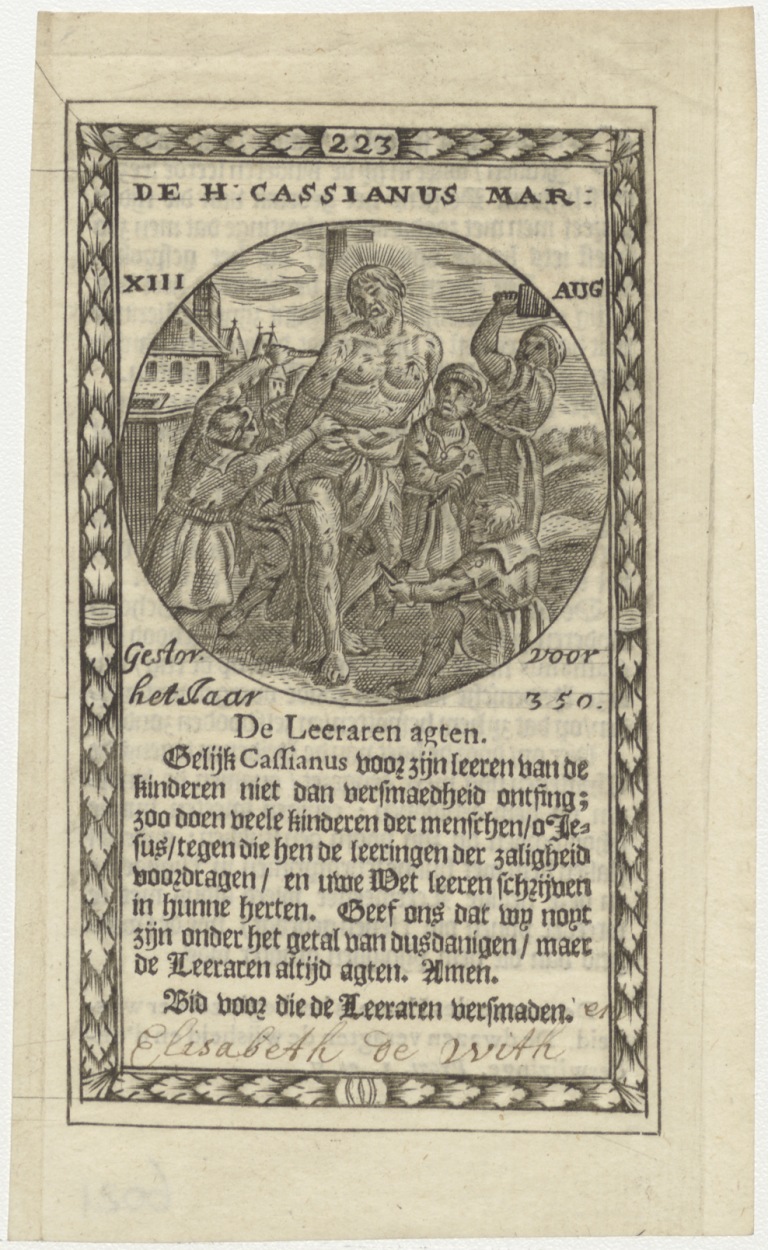 H. Cassianus, gebed, Elisabeth de With, kz. levensbeschrijving