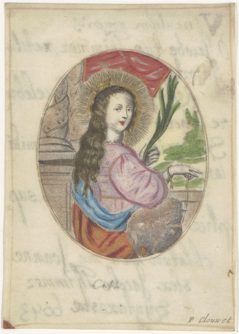 H. Catherina, ingekleurd, kz. Jacoba Thimmer, tekst (Latijn)