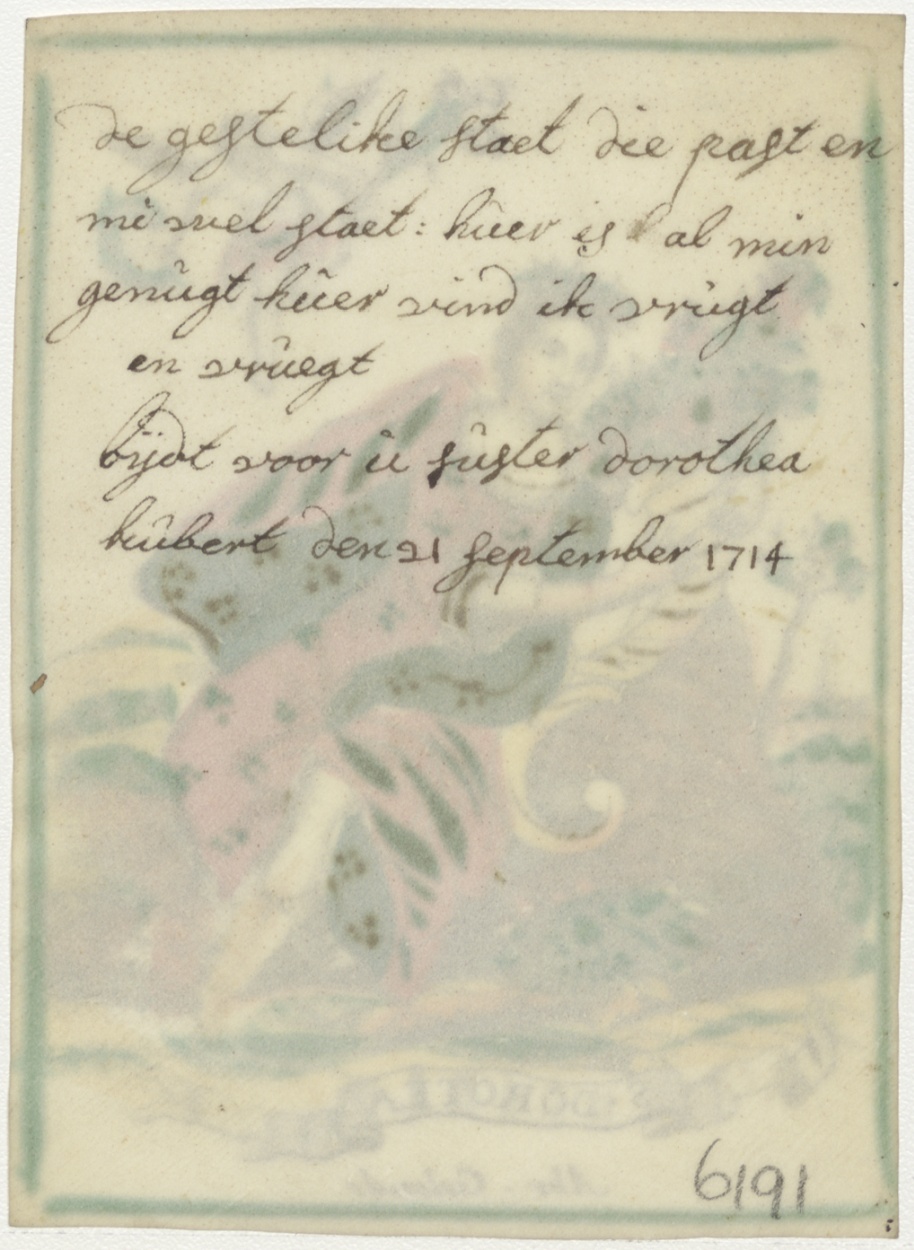 H. Dorotea, ingekleurd, kz. Religieus; geestleijk maegd Dorothea Hubert; 1714