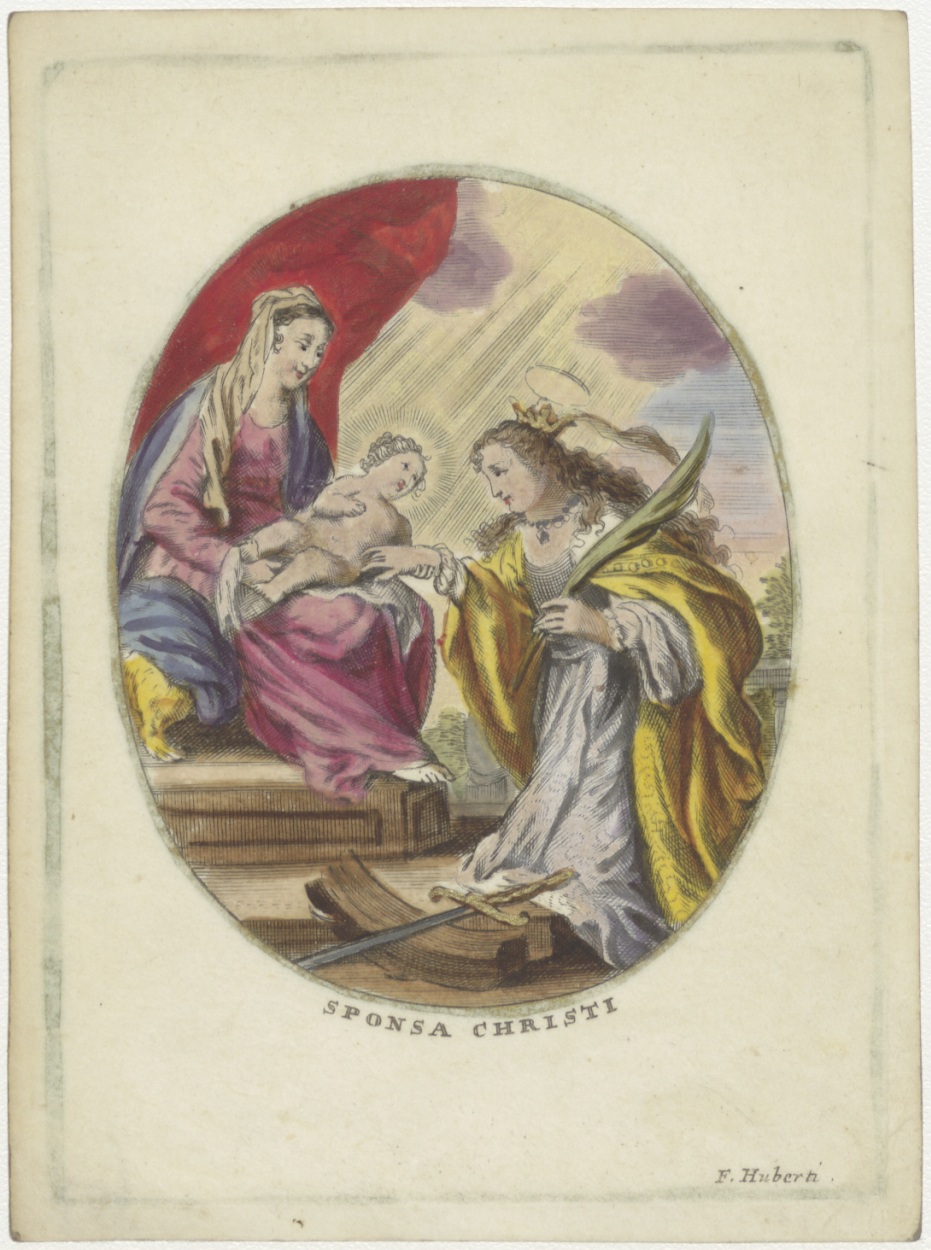 Sponsa Christi, het mystieke huwelijk van H. Catharina van Alexandrië, ingekleurd