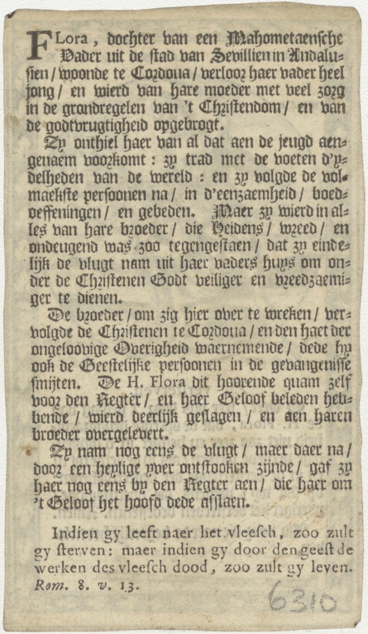 H. Flora, gebed, Lambertje Jans, kz. levensbeschrijving