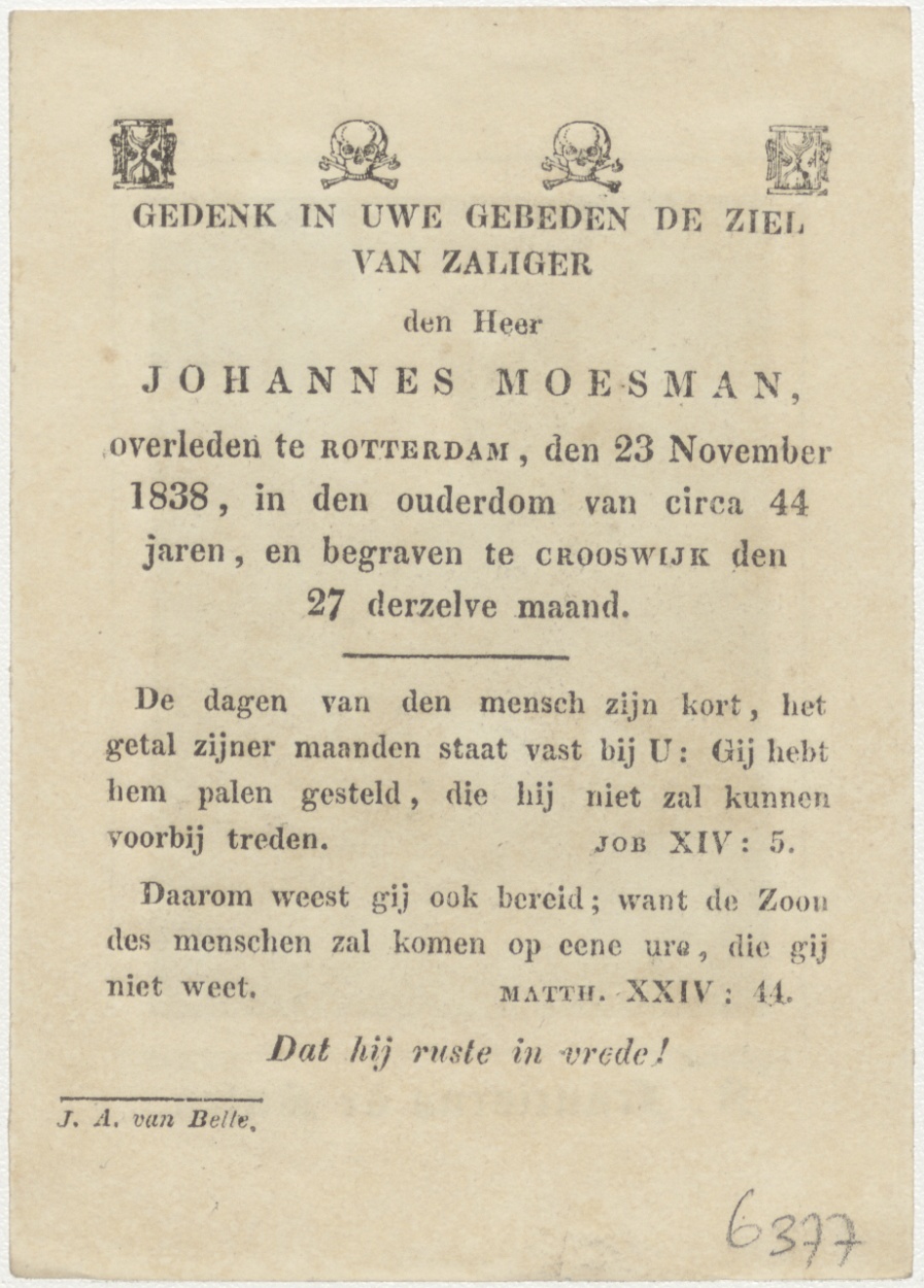 H. Franciscus de Sales, kz. Bid voor ziel Johannes Moesman (+1838), Rotterdam