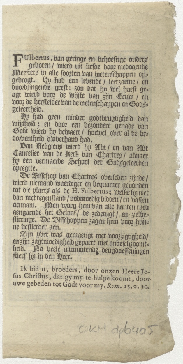 H. Fulbertus, kz. levensbeschrijving