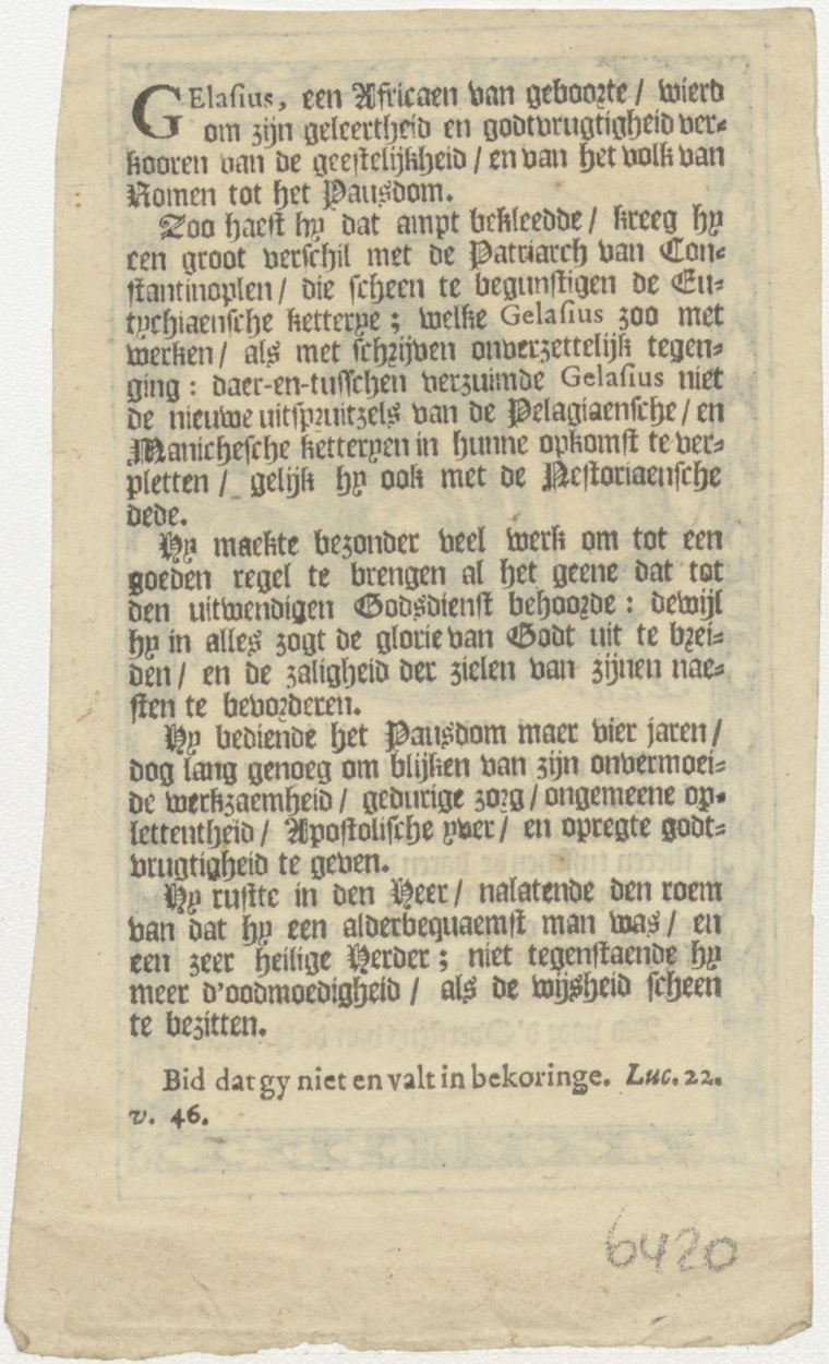H. Gelasius paus, gebed, Petronella Andriesse, kz. levensbeschrijving