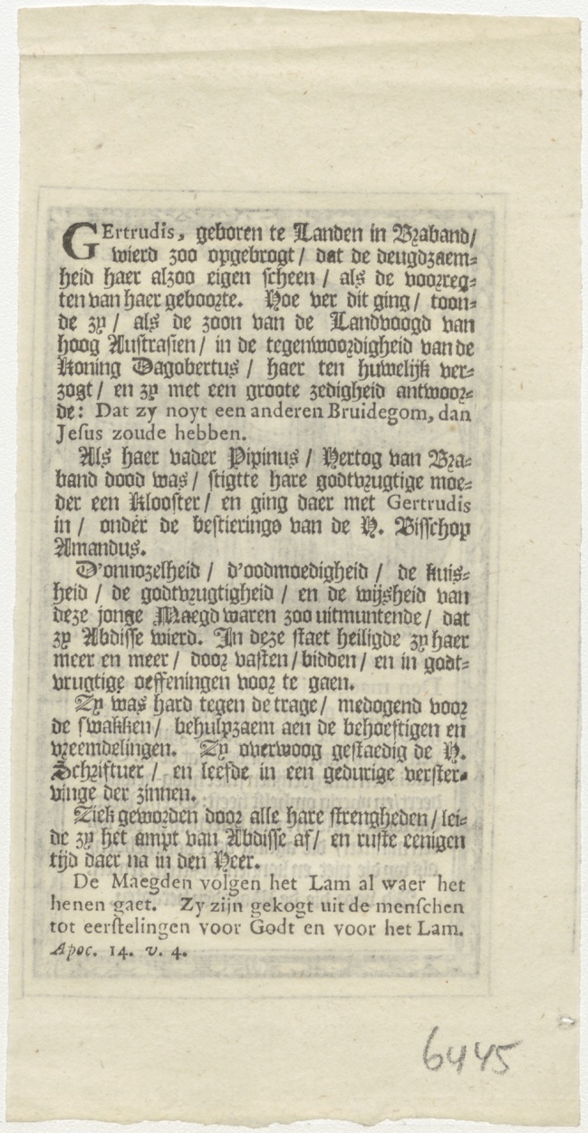 H. Gertrudis van Nijvel, kz. levensbeschrijving