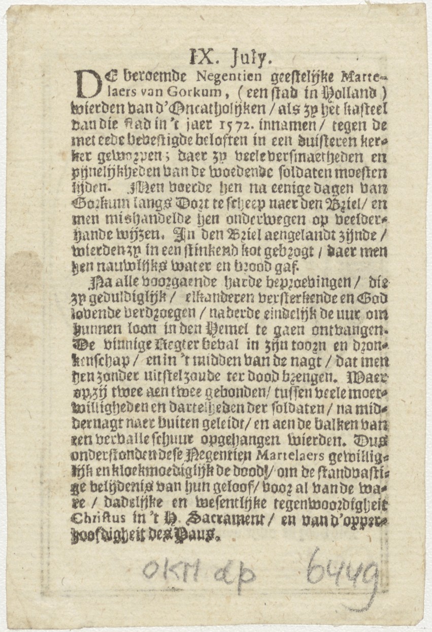 H. Martelaren van Gorcum, kz. Historie van de marteldood