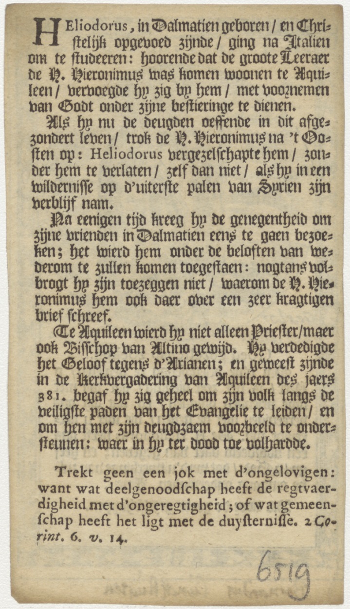 H. Heliodorus, gebed, Bernardus Lunckhuijzen, kz. levensbeschrijving