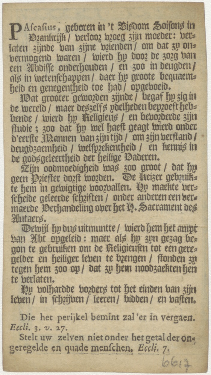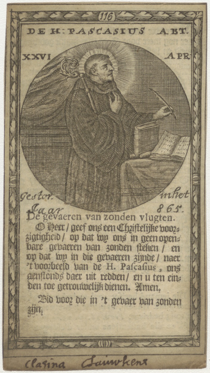 H. Pascasius, gebed, Clasina Lauwkens(?), kz. levensbeschrijving