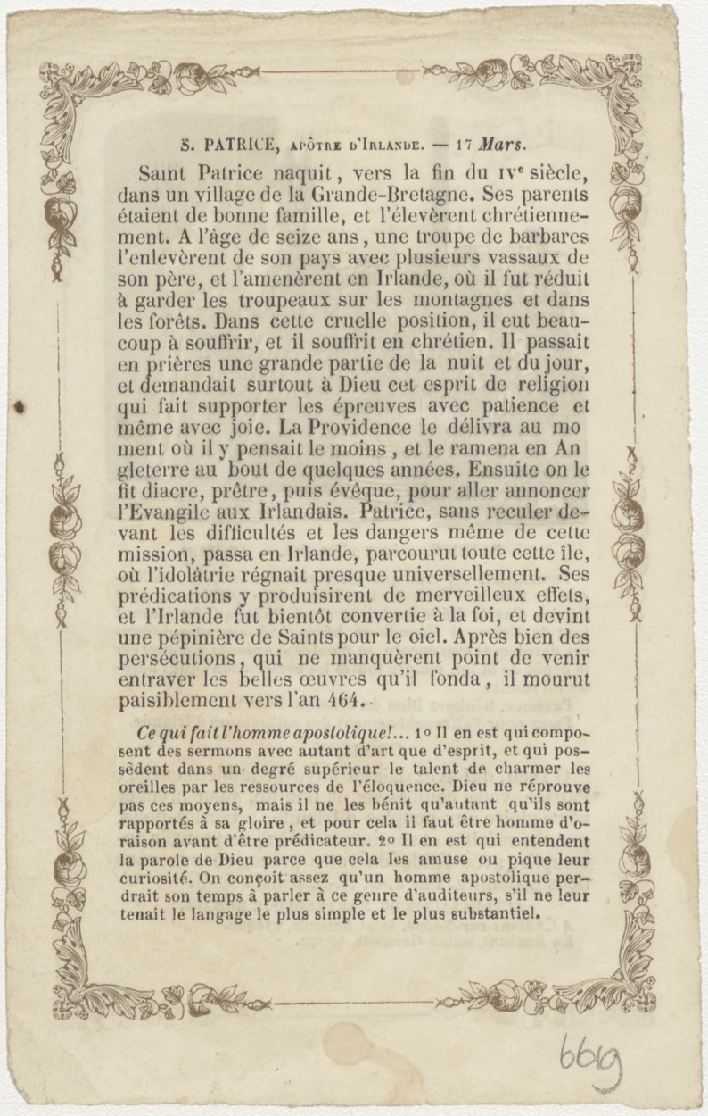 H. Patricia met gebed (Frans), kz. Gebed (Frans)