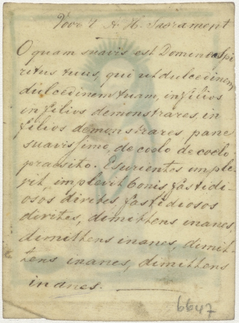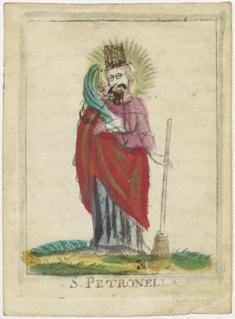 H. Petronella, ingekleurd, kz. H. Sacrament, tekst (Latijn)