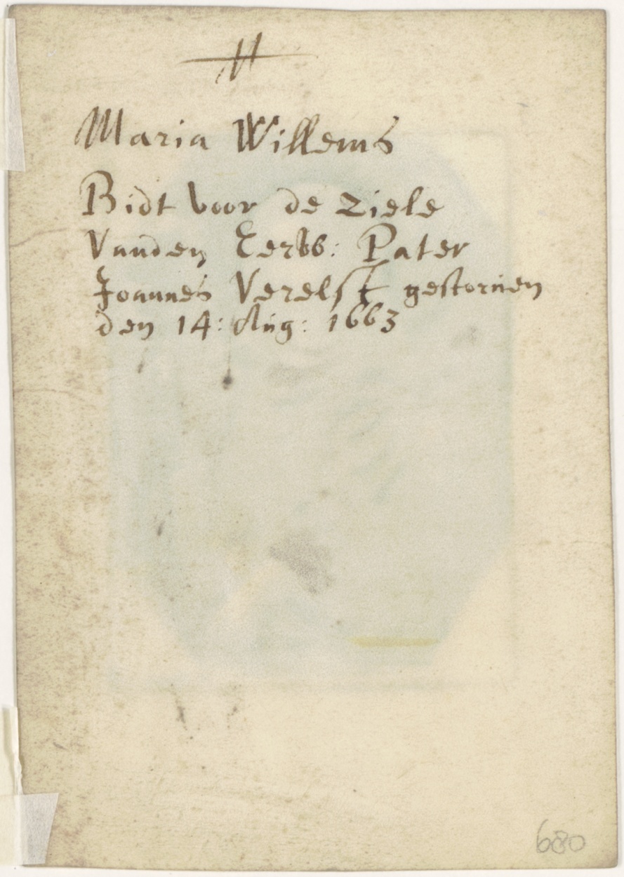 H. Margareta, ingekleurd, kz. Religieus;Maria Willems, Bid voor ziel eerw. pater Joannes Verelst (+1663)