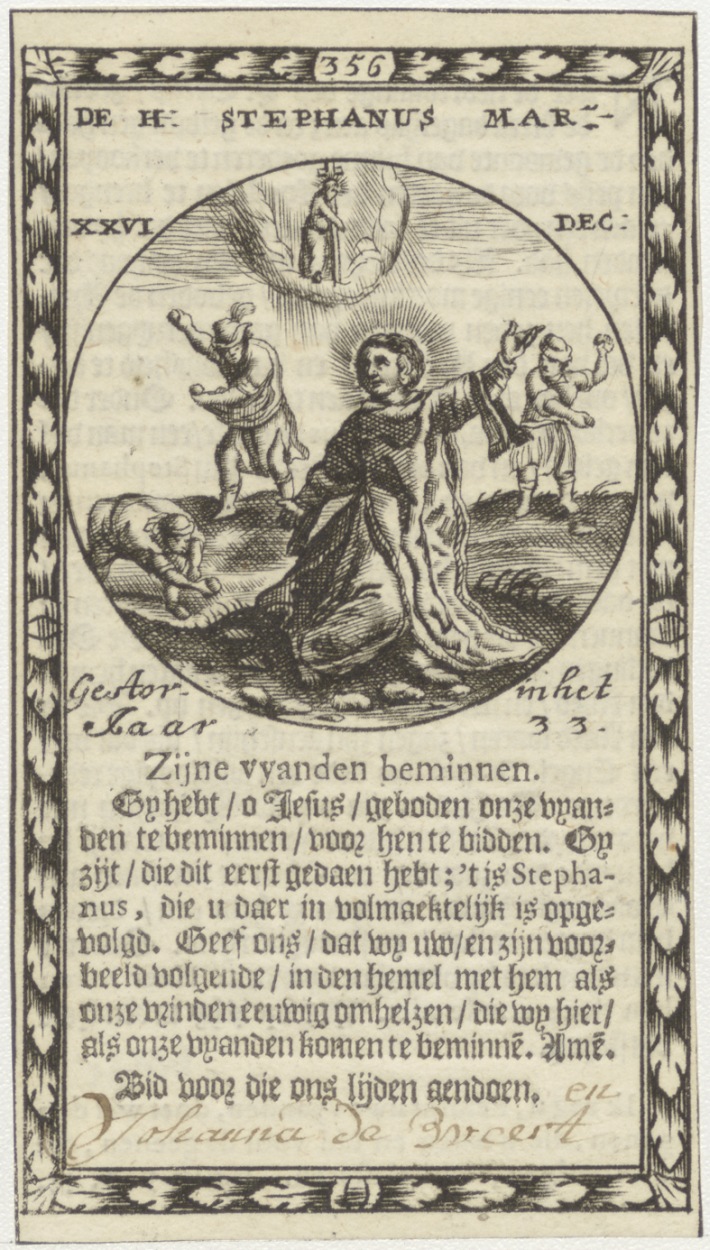 H. Stephanus, gebed, Johanna de Weert, kz. levensbeschrijving
