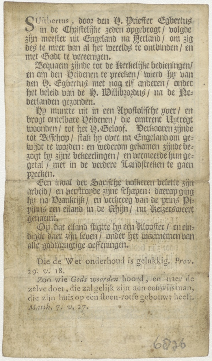 H. Suitbertus, gebed, ... pastoor, kz. levensbeschrijving