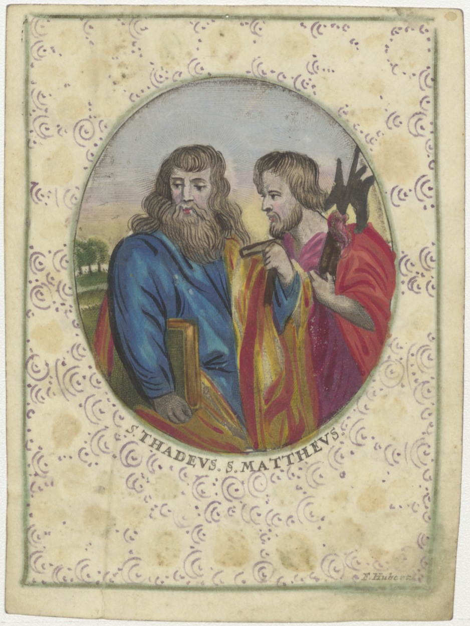 H. Judas Thadeus en H. Mattheus, ingekleurd, kz. ...Oud schrift (?)