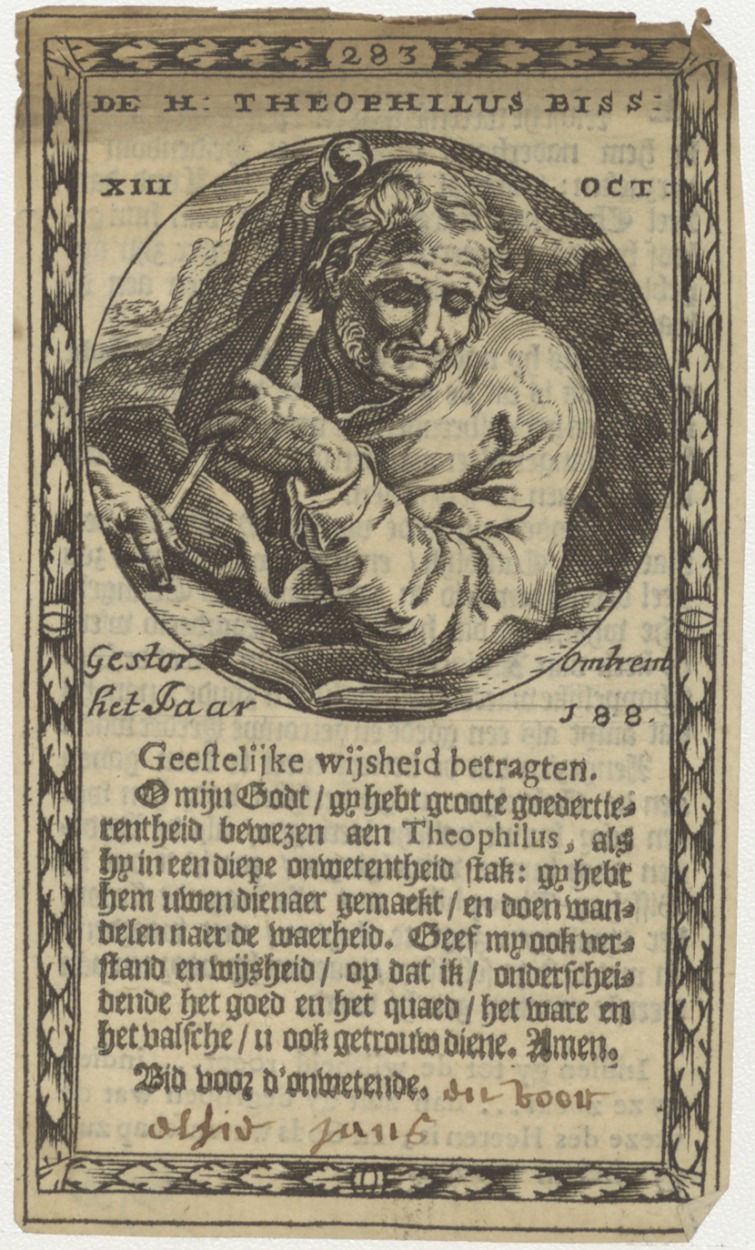 H. Theophilus, gebed, ... Jans, kz. levensbeschrijving