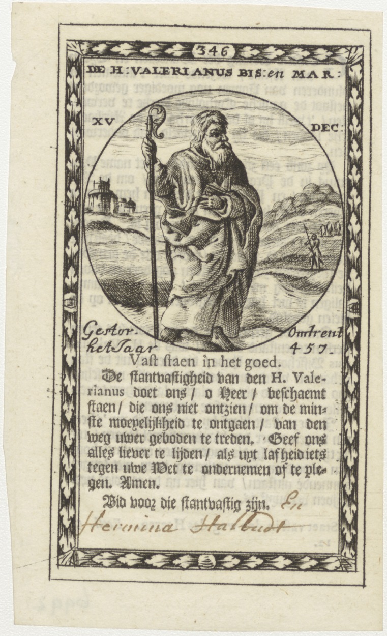 H. Valerianus, gebed, Hermina Halberds(?), kz. levensbeschrijving