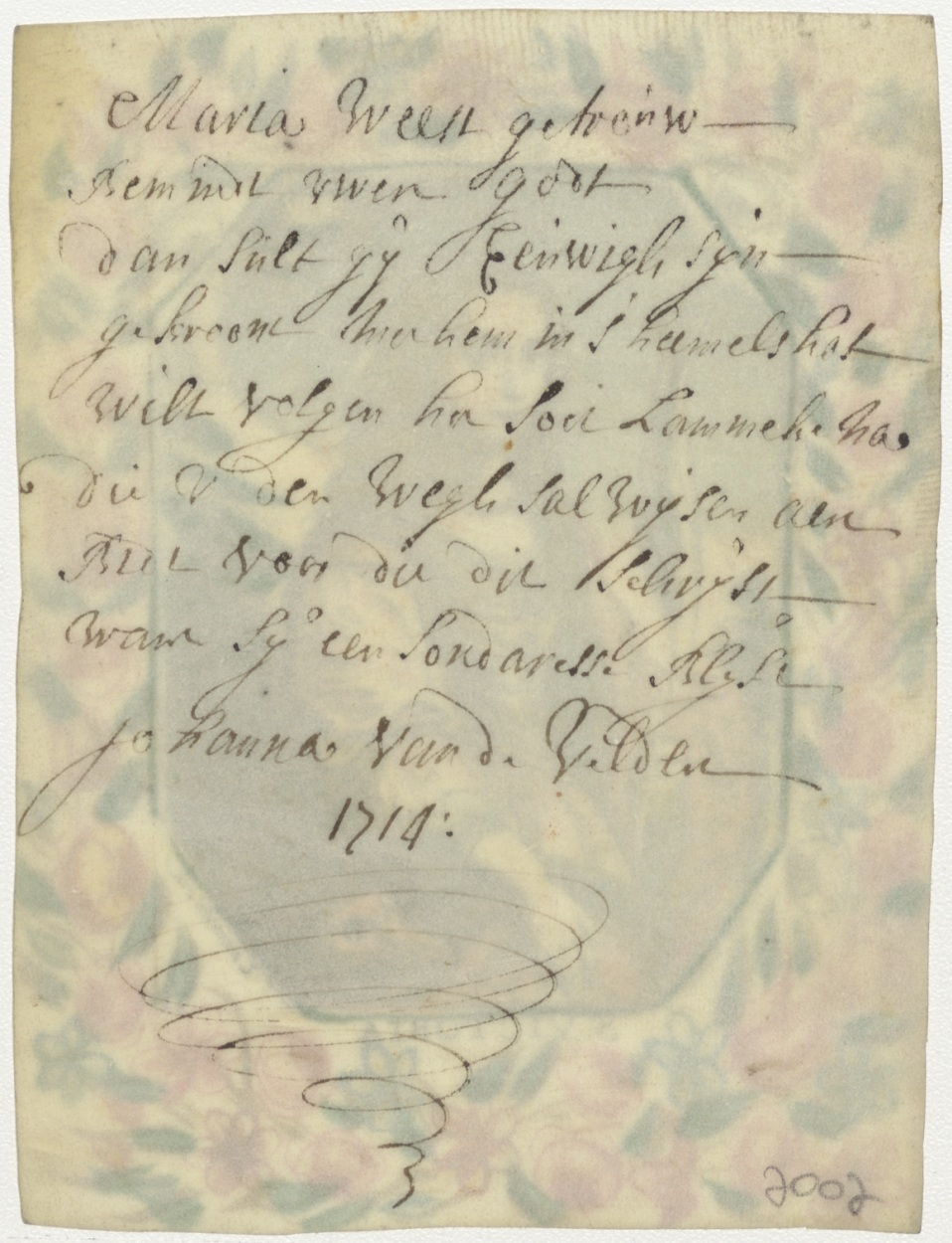 H. Victoria, ingekleurd, kz. Bid voor die dit schrijft, Johanna van de Velden (+1714)
