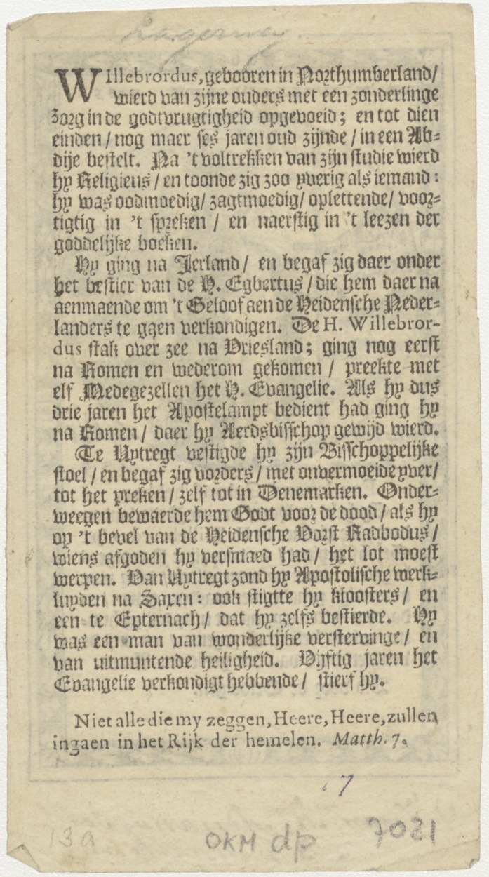 H. Willibrordus, gebed, Adrianus Joh(anne)s B(isschop) v(an) Haarlem, kz. levensbeschrijving